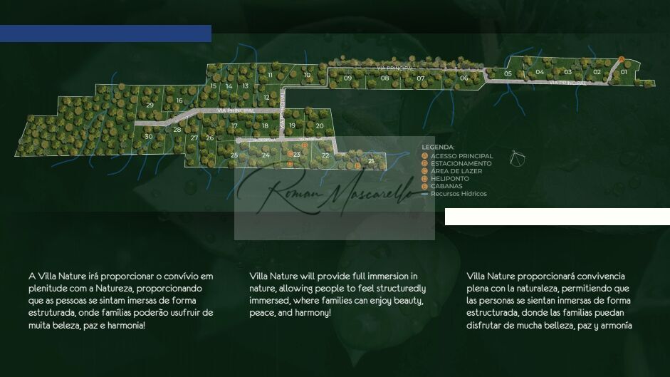 Bem Vindo ao Villa Nature, condomínio rural localizado em uma das regiões mais belas de Santa Catarina, com infraestrutura completa, incluindo sede social e heliponto, e terrenos de 20.000 m2 com vista para a lagoa ou mar.